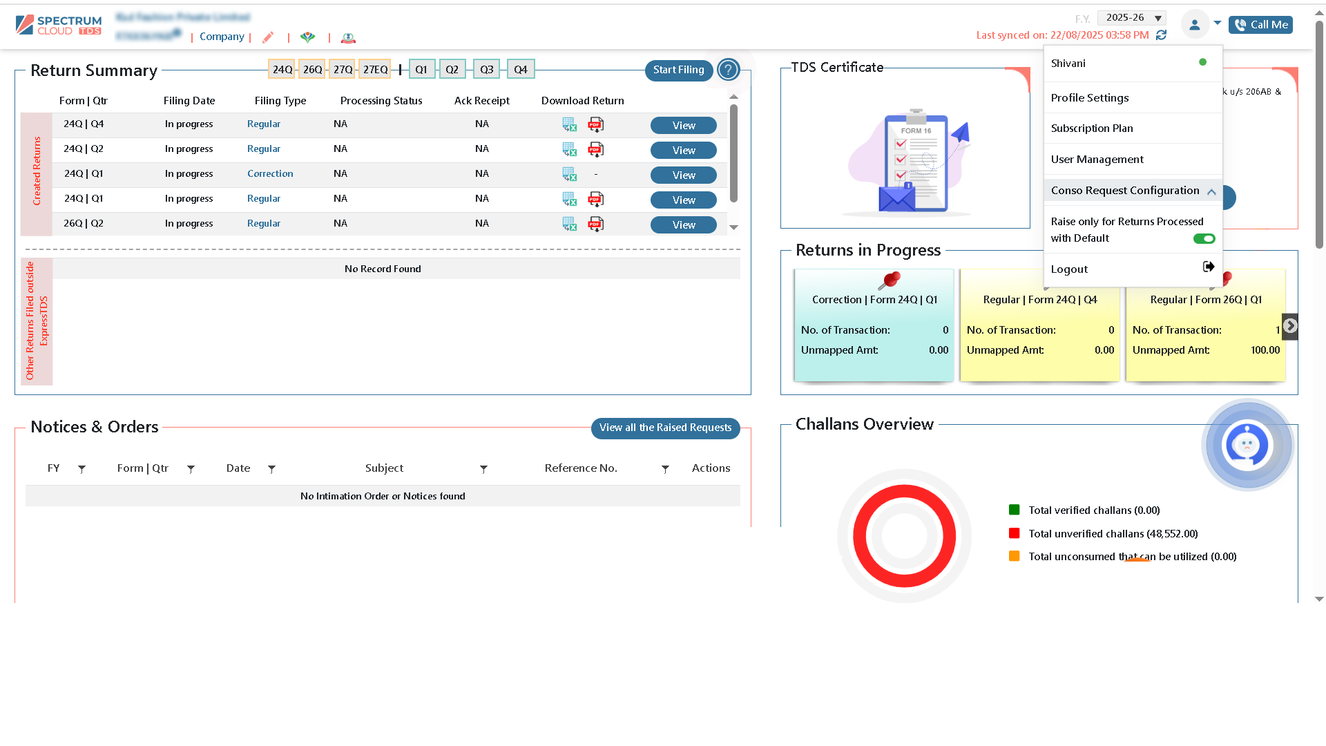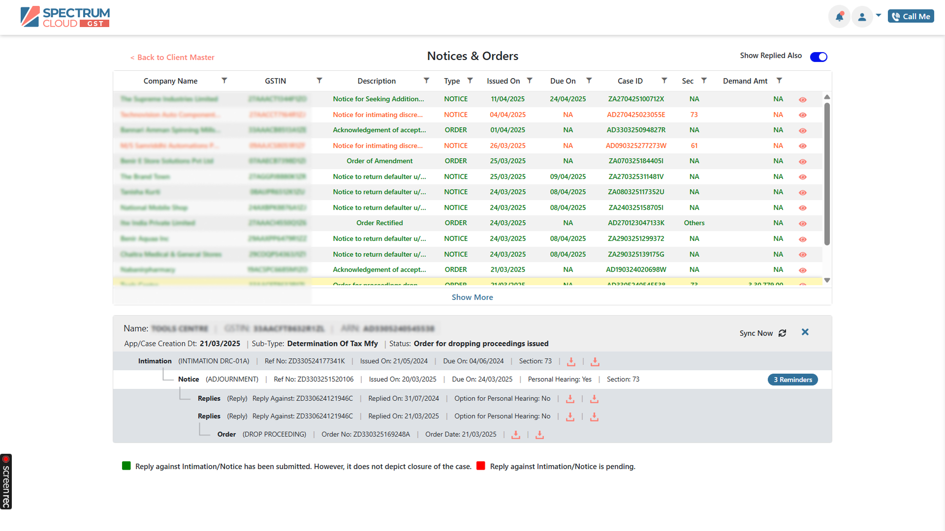 Spectrum Cloud keeps track of GST and TDS notices from government portals and alerts you in real-time so you don’t miss important updates.